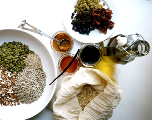 Place oats, almonds, pumpkin seeds, sunflower seeds, sesame seeds and cinnamon in a large bowl and toss to combine.