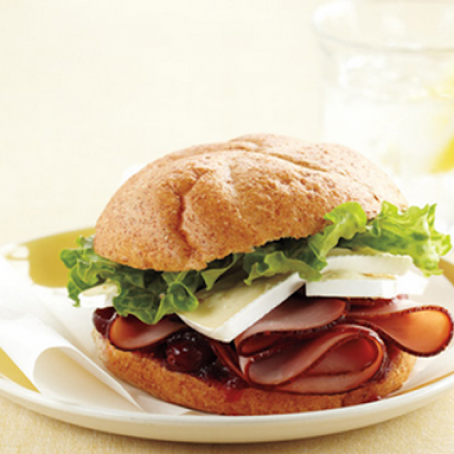 Sandwiches feature whole berry cranberry sauce or an onion marmalade spread with smoked ham and brie cheese. For more of a kid friendly version, substitute the cranberry or onion marmalade with a fruit preserve.
