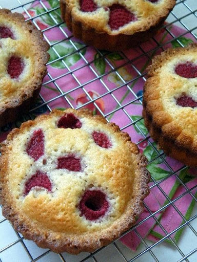 Combine the almond meal, icing sugar, flour and baking powder together in a bowl. Add the egg whites and stir to combine. Add the cooled butter and stir. Grease your muffin tins and spoon the mixture in. Sprinkle the berries on top and bake for 15-20 minutes until lightly browned and until the centre springs back when lightly touched.