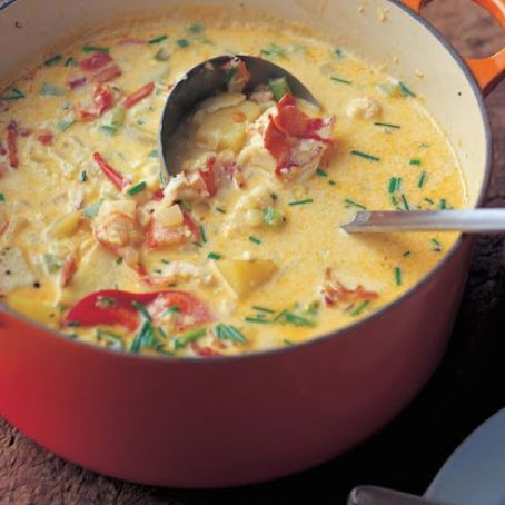 Prepare this hearty chowder at the height of summer, when lobster and fresh corn are at their seasonal best. Creamy and rich, this hearty chowder is filled with the flavors of sweet corn, succulent lobster, chives, and heavy cream for added richness. Serve this recipe with a loaf of crusty bread for sopping up that luscious sauce.