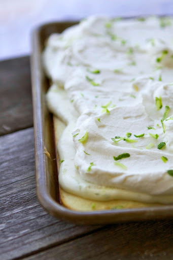 Love Key Lime Pie? Add it right on top of sheet cake, it's the ultimate pie-cake. Perfect for summer gathering's.