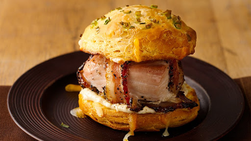 Take some flaky buttery biscuits and turn then into these Peppered Bacon Wrapped Turkey Pub Sandwiches.