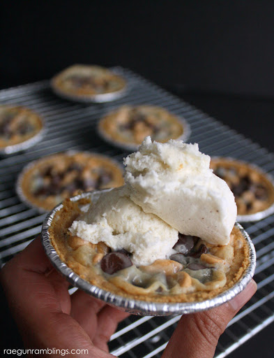 Add 1 TBS coconut to each pie crust. Top with chocolate and peanut butter chips evenly divided. Cover with sweetened condensed milk. Bake at 350 until bubbly and hot about 15 Minutes. Serve warm.