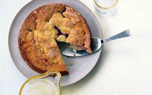 • Simple, tender buttermilk cake topped with a nice, sugary crunch-you could easily substitute any sweet, juicy berries.
