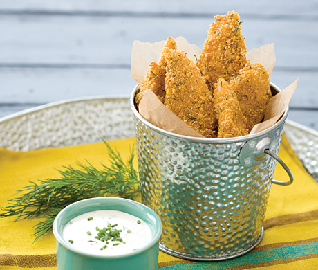 If you can't find or don't want to spend the extra money on chicken tenders, simply place a whole chicken breast between two layers of plastic wrap, pound it to an even 1/2-inch thickness, and slice it into strips.