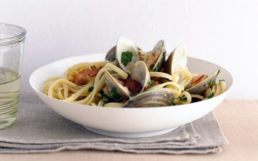 LINGUINE w/GRILLED CLAMS & BACON