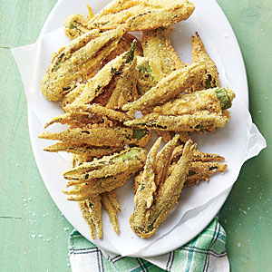2. Pour oil to a depth of 2 inches into a large Dutch oven; heat to 350°. Fry okra, in batches, 2 to 3 minutes or until brown and crisp, turning once. Remove okra, using a slotted spoon; drain on paper towels. Add salt and pepper to taste; serve.