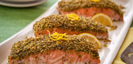 8.Serve on a bed of your favorite greens, with lemon as garnish