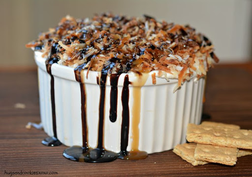 3.In a mixer, beat cream cheese, sugar, caramel and cool whip until blended.