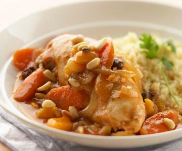 Add to cooker. Cover; cook on low-heat setting for 6-1/2 to 7 hours or on high-heat setting for 3-1/2 to 4 hours. Serve in bowls with couscous. Sprinkle with nuts. Garnish with cilantro. Serves 4.