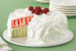 Dip bottoms of cake pans in warm water 10 sec.; unmold. Fill and frost cake layers with COOL WHIP. Refrigerate 1 hour. Top with berries.