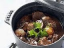 Remove the meat from the pot with a slotted spoon. Let the sauce sit for a few minutes, then skim off the fat and discard. Return the meat to the pot. Add the pearl onions and mushrooms; heat through. Season with salt and pepper and garnish with parsley. (For better flavor, make the dish a day ahead.)