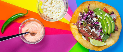 1. Make the taco shell: Line a baking sheet with a paper towel. Pour enough oil into a large Dutch oven to reach a depth of 2 inches and heat until a deep-fry thermometer reaches 350˚. Working with 1 tortilla at a time, fry, flipping often until the tortilla is light golden, 45 seconds to 1 minute. Using tongs, push down on the center of the tortilla, so the outer edges flare and puff up. Continue to fry until golden brown and puffy, 1 minute more. Remove from the oil and place upside down over a glass cup set over the prepared baking sheet; season with salt. Repeat with the remaining tortillas.