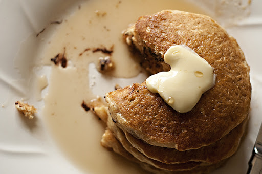 Pour the batter onto the heated griddle, about a 1/4 cup each. Add any berries, chocolate chips or nuts to each pancake at this point. Cook the pancakes for a couple of minutes until bubbles appear on the surface. Slide a spatula under the pancake and flip it over. Cook the pancakes on the other side for another 2 minutes or until golden brown.