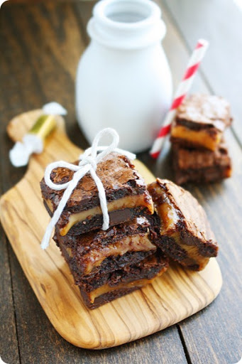Bake for 15 minutes. Remove pan to a wire rack and cool brownies completely in the pan. With a thin knife, loosen caramel along sides of pan. Using foil, lift brownies from pan and cut into squares for serving.