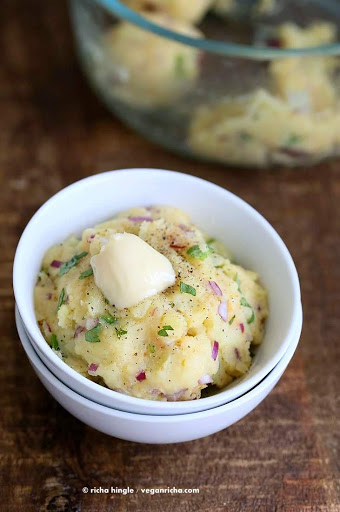 Or heat 1 tsp neutral oil in a skillet over medium heat. When hot, add ¼ to ½ tsp mustard seeds and wait until they start to pop. Drizzle the tempered oil and seeds into the mashed potatoes. For variation, use cumin seeds to temper the oil