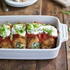 Beat eggs and lemon juice together in a shallow dish. Turn stuffed cutlets in egg batter and back into flour.