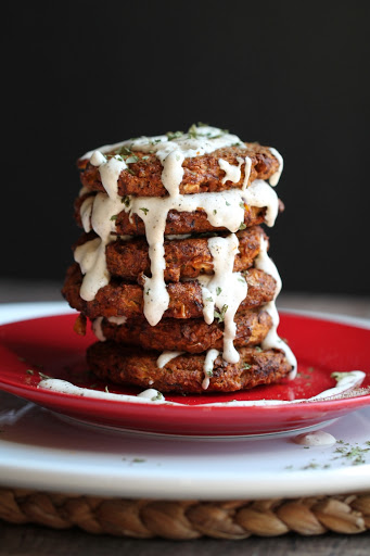 Once the time is almost up, preheat the oven to 400 degrees and line a sheet pan with parchment paper. Bake the patties for 25 minutes, carefully flip them over with a spatula (they will be tender still ast this point) and bake for another 10-15 minutes depending on how crispy you want them. I went the full 15 minutes, but just keep an eye on them. They should be a very golden brown color. Let cool about 10 minutes before serving.