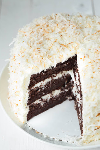 Chocolate Cake with Coconut Cream and Marshmallow Buttercream Frosting