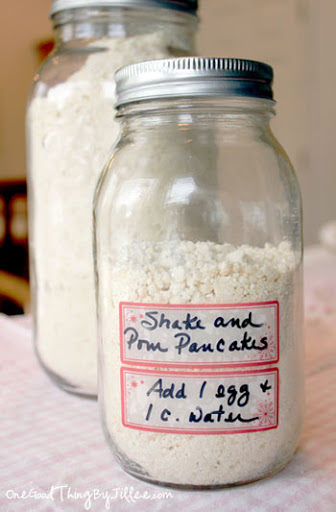 Add 2 cups Ready-Quick Mix and 1 teaspoon of sugar(unless you put in the 1/4 c. sugar above) to a 1 quart mason jar, put the lid on the jar, and shake the contents until it’s well-combined. Add 1 egg & 1 cup milk. Shake vigorously and pour.
