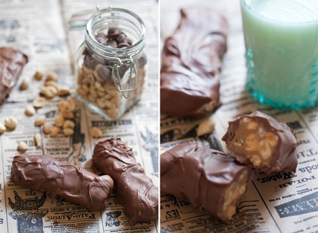 Line the pan with tin foil and melt a small amount of chocolate to spread on the bottom. This will help when dipping the bars and to remove them from the pan.