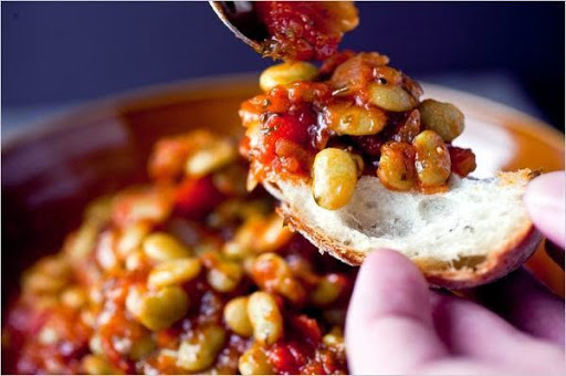 • These beans become creamy as they bake slowly in a sweet and sour broth flavored with honey and vinegar.
