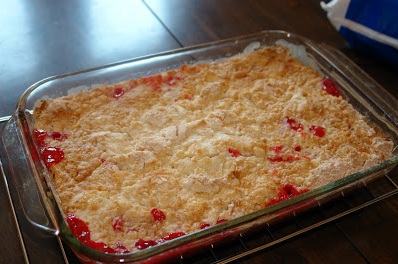 Place ingredients in the order listed into a 9x13 pan, making each spread out into a layer on top of the other. Cut butter into several squares on top.