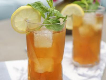 Divide the mixture among 4 highball glasses with ice. Garnish with lemon and mint.