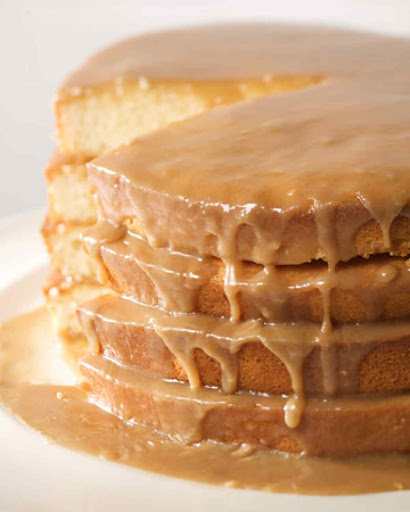 Place 4 strips of parchment paper around perimeter of a serving plate or lazy Susan. Place the first layer on the cake plate. Pour over about 1/2 cup icing, spreading evenly to cover. Repeat process with 2 more layers. Repeat process with two more layers. Place the remaining layer on top of the third layer and cover cake completely with remaining icing.