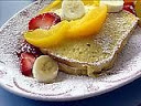 Blend the ricotta cheese, sugar, orange and lemon zest in a medium mixing bowl. Cover and set aside. Beat eggs and milk in a wide flat bowl. In a large saucepan or griddle, melt margarine on medium heat. Dip each piece of bread into the egg mixture briefly on each side. Place in saucepan and cook until browned on each side. Spoon about 2 tablespoons of the ricotta mixture onto 5 pieces of French toast and spread. Place remaining 5 pieces of toast on top of mixture.