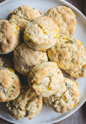Sweet Corn & Hatch Buttermilk Biscuits with Ricotta Hatch Chile Pimento Cheese - Butterlust