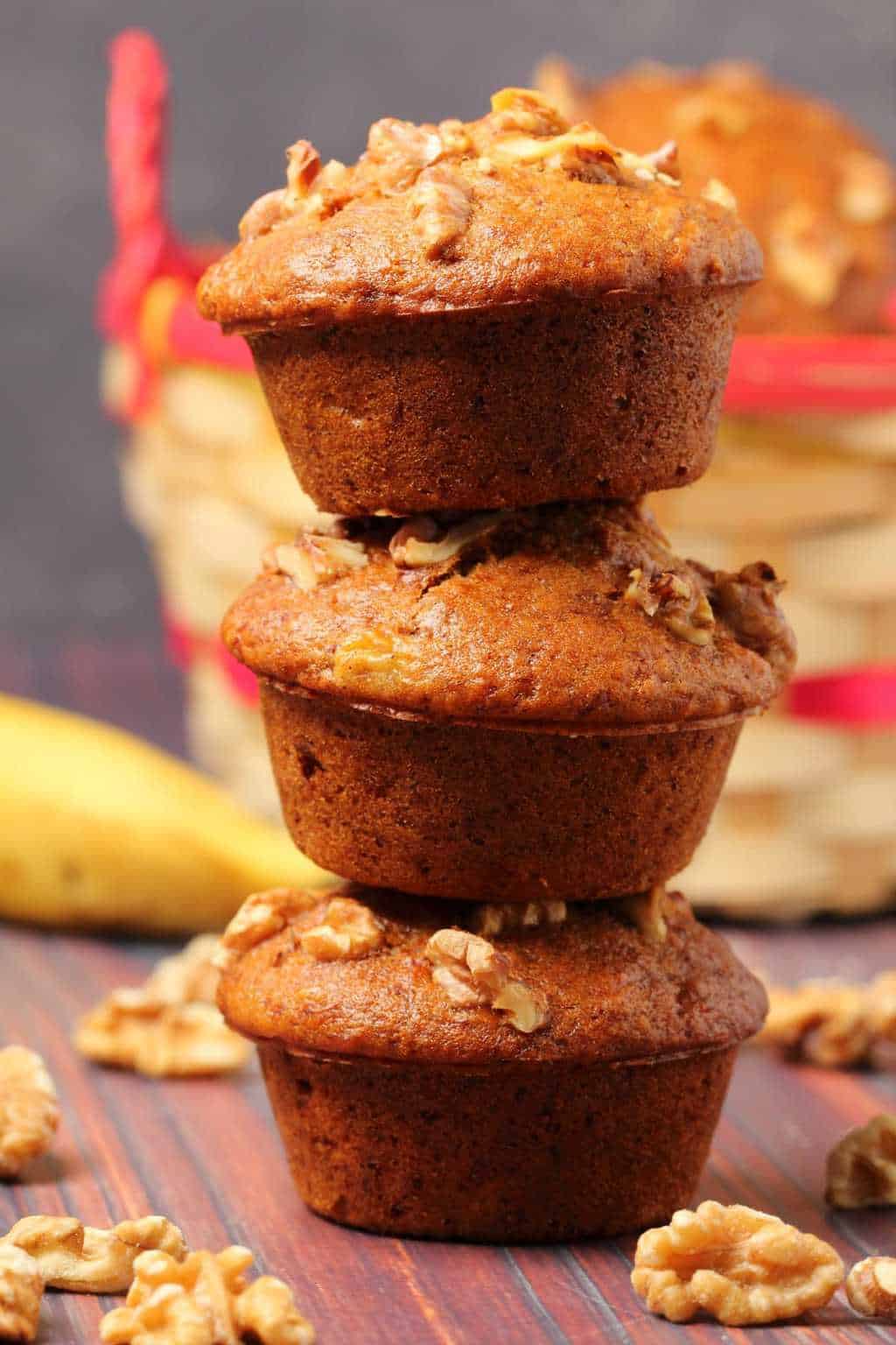 Perfectly moist vegan banana muffins with a gorgeous bakery-style domed top. Soft, fluffy and packed with banana flavor.