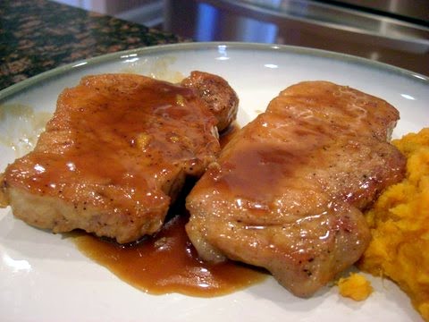 2.heat oil in 12 inch skillet until smoking. Medium high heat. Add pork to skillet and cook until well browned, about 4-6 minutes. Turn chops and cook 1 minute longer; transfer chops to plate and pour off any oil in skillet. Return chops to skillet, browned side up,and add glaze mixture; cook over medium heat until center of chops registers 140 on instant read thermometer. About 5 to 8 minutes. Remove skillet from heat;transfer chops to clean platter; tent with foil, and let rest 5 minutes.