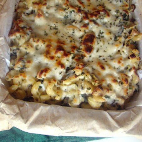 Place all your ingredients in a 13 x 9 inch pan, top the ingredients with 1 1/2 cups of mozzarella and then sprinkle with parsley. Place the pan in the oven and bake for approximately 15 minutes at 425°F.