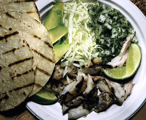 Serve with lime mayonnaise, tortillas, remaining 1 cup chopped onion, remaining 1/2 cup cilantro, avocados, cabbage, Salsa Verde, and lime wedges.
