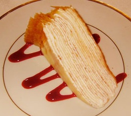 Cover with another dry crepe and repeat covering with the Pastry Crème until you have reached 20 layers.