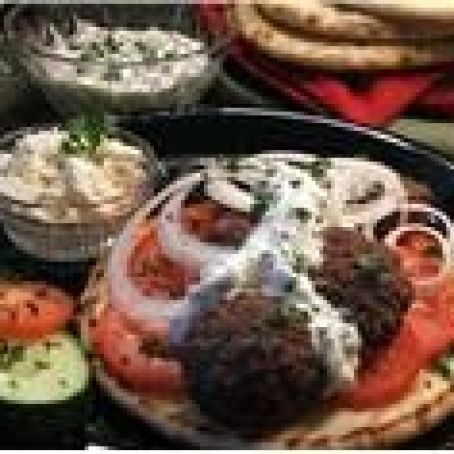 7. To serve, place equal amounts of beef and tomato in each pita half; top with yogurt sauce.