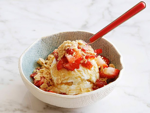 • Top 1/3 cup Low-Fat ricotta cheese with 2 sliced strawberries, 2 teaspoons of agave syrup and 1 crumbled graham cracker and enjoy.