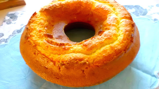 Grease and cover in flour (flour and powdered sugar for me) one ring mold and pour the mixture evenly.