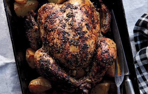 Herbed Faux-Tisserie Chicken with Roasted Potatoes