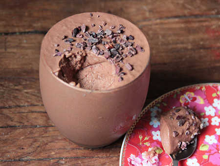1. Place all ingredients in a large mixing bowl. Whisk ingredients together until well combined and smooth. Pour into 4-6 serving glasses. Sprinkle with cacao nibs if you like.