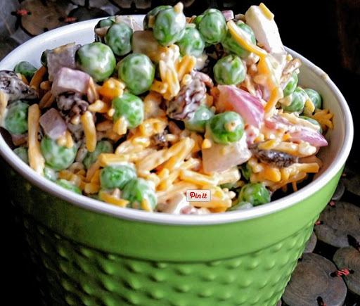 Toss peas, bacon, raisins, Cheddar cheese, onion, and sunflower seeds together in a large bowl. Stir mayonnaise, vinegar, and sugar together in a small bowl; drizzle over the salad and toss to coat.