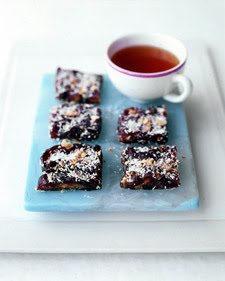 Coconut-date bars are a good source of fiber (each has as much as a serving of bran cereal) and potassium.