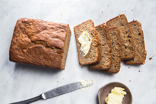 Do ahead: Banana bread can be baked, cooled, then wrapped in plastic and left at room temperature up to 3 days, or frozen up to 3 months.