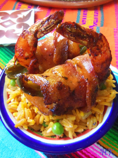 In a bowl, combine the spice mix. Add salt to taste, set aside. Place the jalapeños in a small pan, drizzle with a teaspoon of oil and heat to medium heat. After a few minutes, the skins will start to blister and blacken. Turn as needed and remove from heat to cool. While the jalapeños are roasting on the stove top, prepare the shrimp.