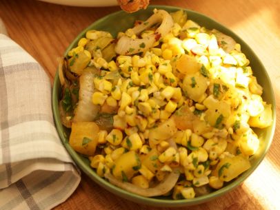 Place the corn on the grill or in a broiler pan. Cook, turning every 5 minutes, until lightly browned all over, about 20 minutes. Let cool, then cut the kernels from the ears (you should have about 3 cups).