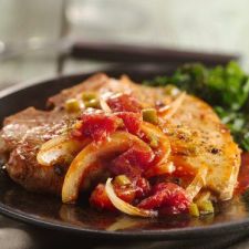 Remove the skillet from the oven. The sauce should be thick and bubbly. Remove the chops onto a plate and cover with foil, to keep warm.