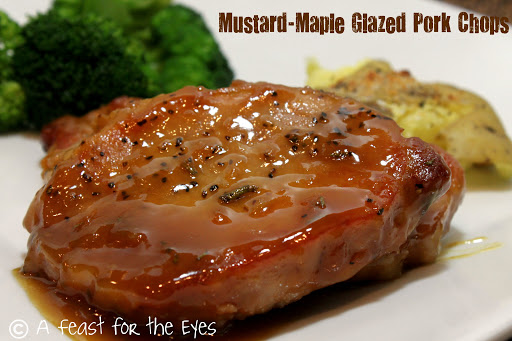 Pork chops turn into a 45-minute work night dinner. Dijon mustard, maple syrup, rice vinegar and a splash of chicken broth to make a sweet and savory glaze.