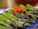 Preheat grill. If using a stovetop grill, use medium-high heat. Gently toss asparagus with seasoning, oil and salt and pepper, to taste. Grill asparagus until tender, turning once, about 6 minutes. Serve with barbecue butter.