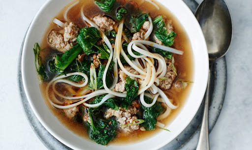 Add broth and bring to a boil; reduce heat and simmer until flavors meld, 8–10 minutes. Add mustard greens, scallions, soy sauce, and fish sauce and cook, stirring occasionally, until greens are tender, 5–8 minutes; season with salt and black pepper.